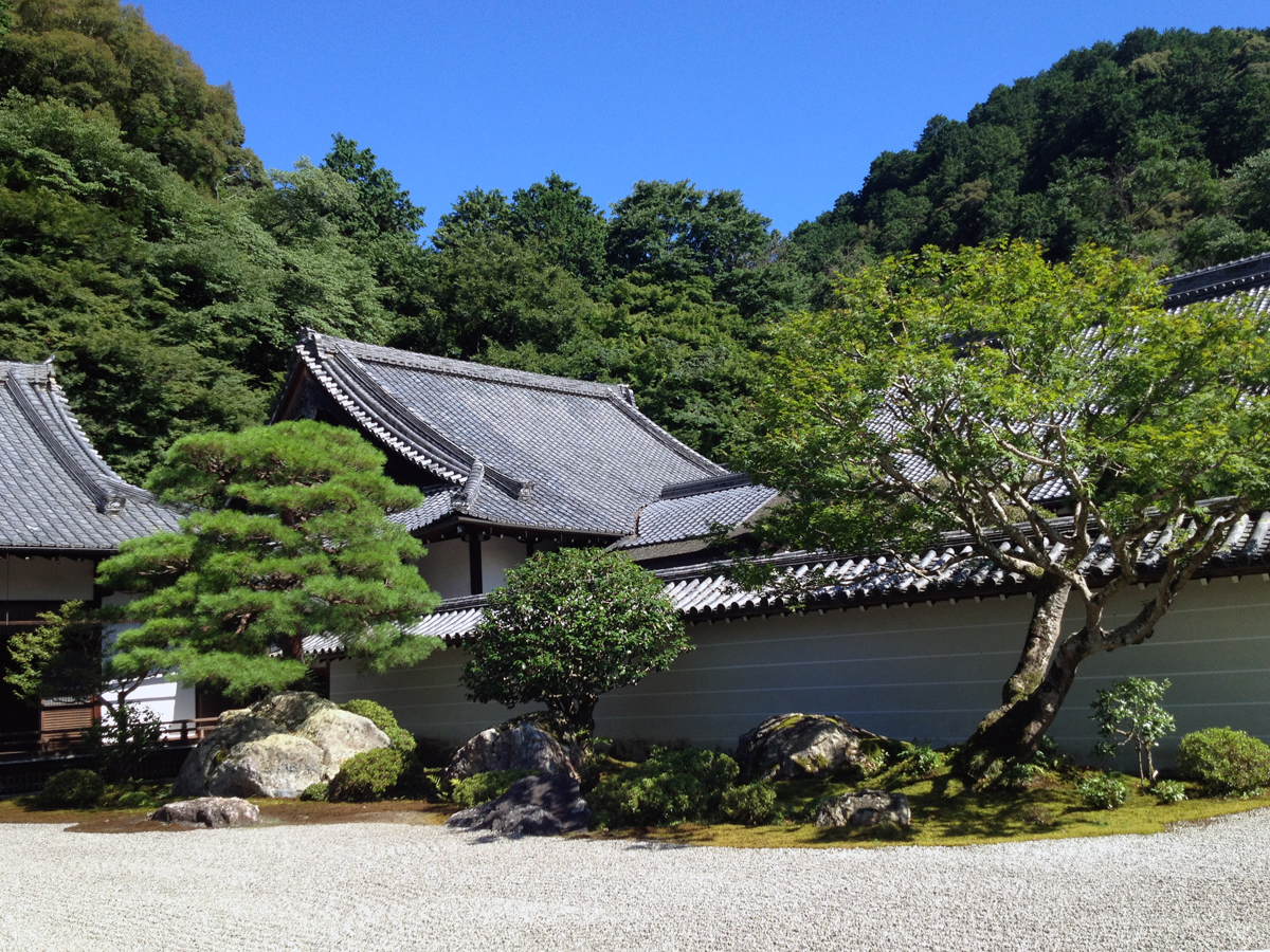 南禅院の西にある天授庵では、枯山水の本堂前庭と、池と出島により配された書院南庭を見ることができます。