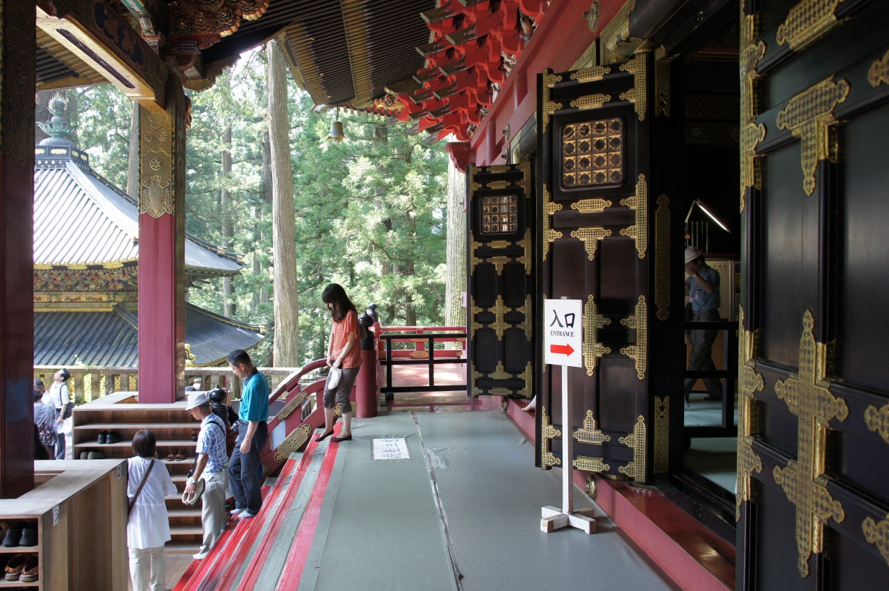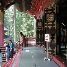 東照宮のハイライトのひとつ、鳴き龍が見れるのはこの本地堂。本堂の中央で、拍子木を叩いて、その反響を聞くのですが、カンカンと叩いた音が内部に反響して、最後は鈴のようにリンリンと響きます。反響が大きくなる叩くベストポイントがあって、場所が少しずれると反響が弱くなってしまいます。いろいろ試しながら解説がありまして、ちょっと楽しいひと時となりました。