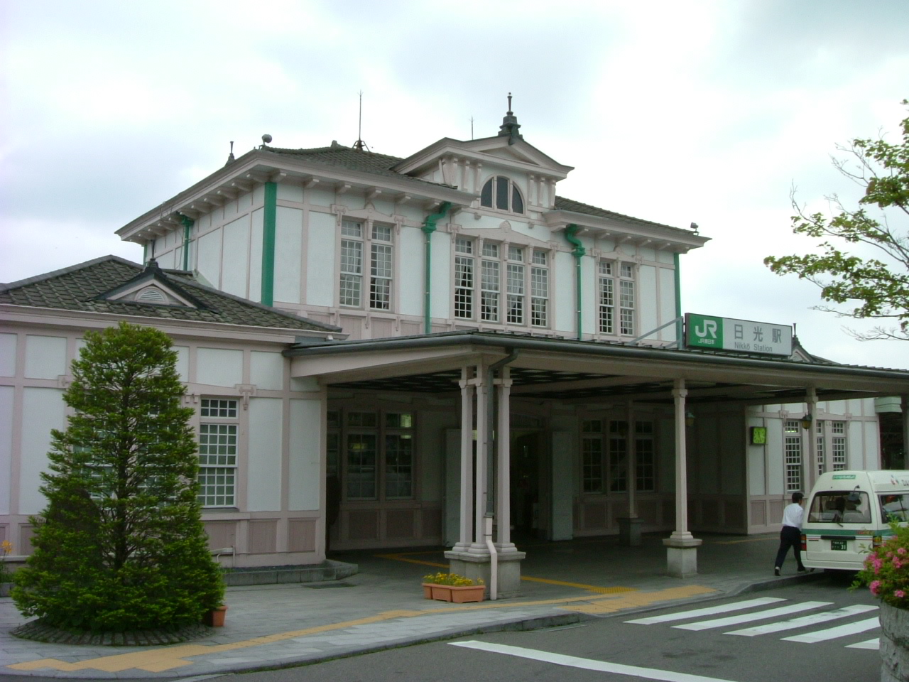 JR日光駅は、宇都宮から約40分。JR日光線の終点です。何か、イメージとして日光と宇都宮が結びついていなかったのですが、日光へは宇都宮からもとても便利。餃子を楽しむ宇都宮経由の日光も十分ありですね。写真は、駅舎。山小屋風の東武日光駅に対して、こちらは明治23年に造られた木造建築。宇都宮の特産である大谷石が使われ、ロマネスク様式だという洒落たものです。東武日光駅の下手、歩いて5分のところ。奥日光へのバスは、まずこのJR日光駅から東武日光駅の順になるので、座るなら、こちらで乗るほうがいいようですね。