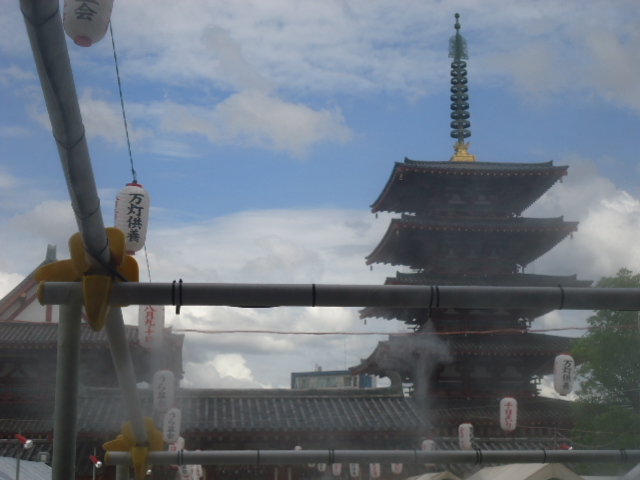 地下鉄谷町線四天王寺夕陽ヶ丘から歩いて10分くらいのところにあります。天王寺駅からでも歩いて行けます。お盆の時で家族連れの参拝客が多かったです。聖徳太子が593年に建立し歴史あるお寺です。西重門にミスト機械が置いてあり気持ちが良かったです。
