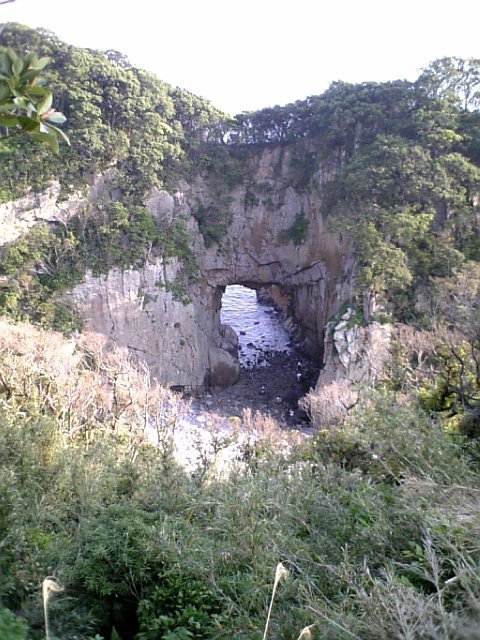 足摺岬の数百メートル手前の駐車場に止めて、歩いて見に行くのですが、その際に白山洞門を見ることができます。