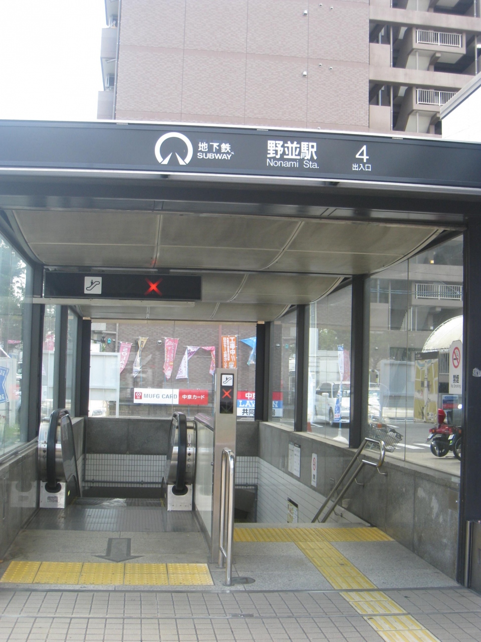 野並交差点の四方に出口があり、エレベータは1か所です。