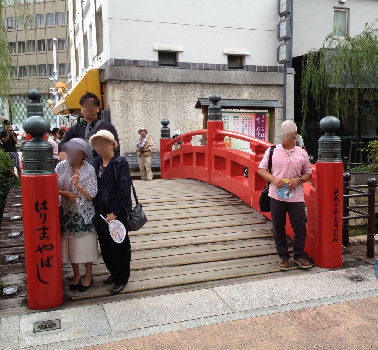 太鼓橋の方を見学しました。もっと大きな橋を想像していたのですが、長さは6~7mくらいでしょうか?朱色に塗られたアーチの形をしております。タクシー運ちゃんによると、昔、僧のたまごが恋人との待ち合わせに使いそれがバレて大変な事になったとか。前の道路は路面電車も走っています。