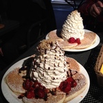 出てきたパンケーキはとってもボリューミー。ホイップクリームの量に圧倒されます。
