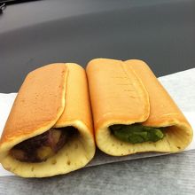 上りにある、藤田屋の「大あんまき」が美味しいです。どら焼きの皮で餡を包んでいます。運転しながら食べられます。