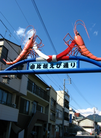 由比の特産品はさくらえび。由比駅を降りればすぐにさくらえびのアーケードがあり、電車の車窓からはさくらえびを干している様子が見られる。