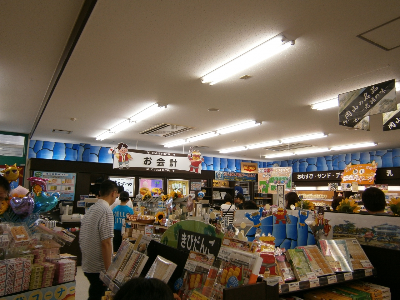 桃太郎のお膝元で、きび団子などのお土産が豊富にそろっています。
