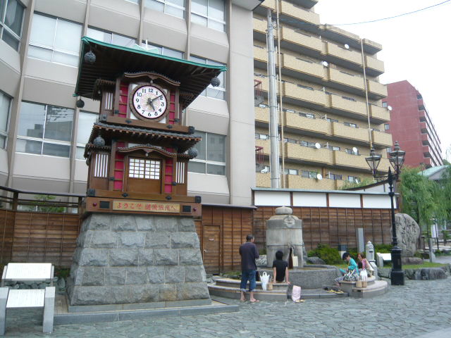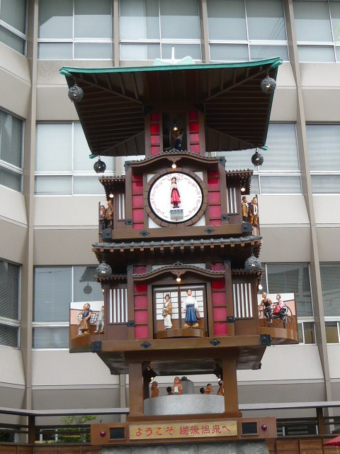 カラクリ時計は毎時0時ちょうどになると動き出すのへ必見です。いつもは2階建ての時計が上に伸びて、地下が登場し、屋根も持ち上がります。時計は裏返り、それぞれの窓からも人形が出てきて廻りだします。道後温泉は狭い敷地で、この場所は何度も通りかかる場所だと思うので、一度は見ておくべきかと思います。