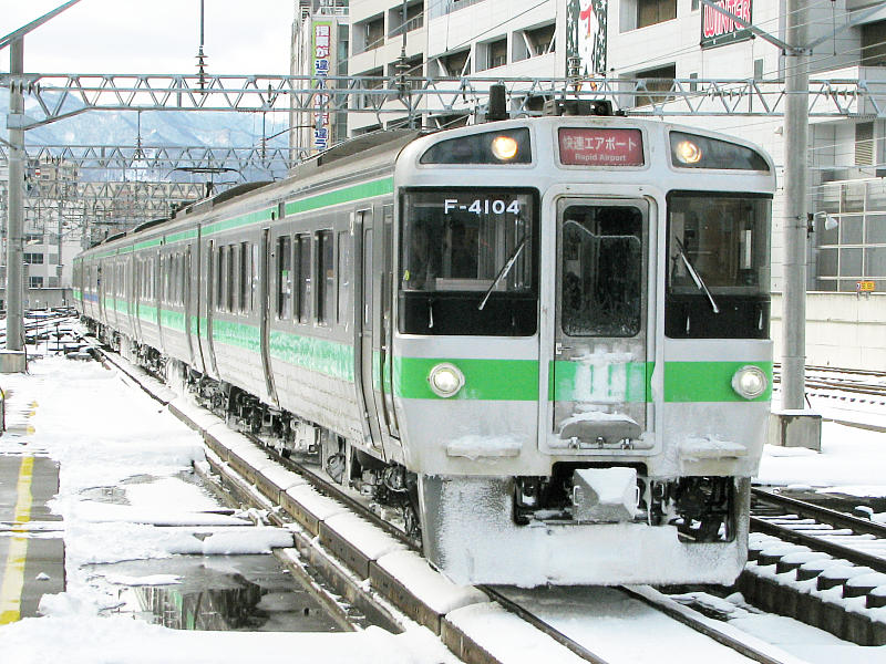 小樽、札幌行の快速エアポートには一般車の721系6両編成が、旭川行きとなる列車には特急車の785系もしくは789系5両編成が使用されます。