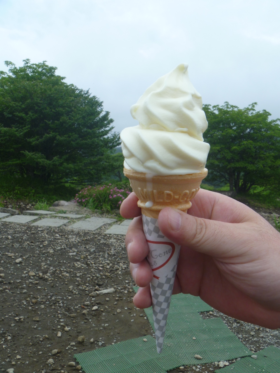 上には小さな売店があり、ソフトクリーム(清泉寮と同じ材料の)250円 が売っていました。