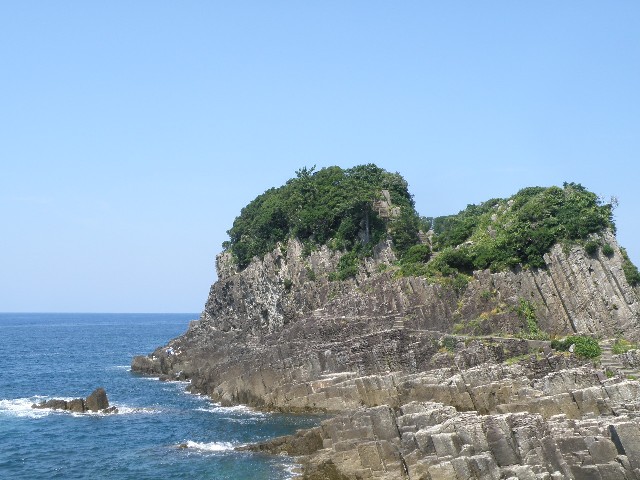 越前岬から東尋坊に行く途中に、鉾島園地があります。こじんまりした駐車場があるので、そこに車を停めて、小さな橋を渡って鉾島に渡ることができます。柱状節理と呼ばれる縦長の細かい刻みが不思議な感じできれいです。