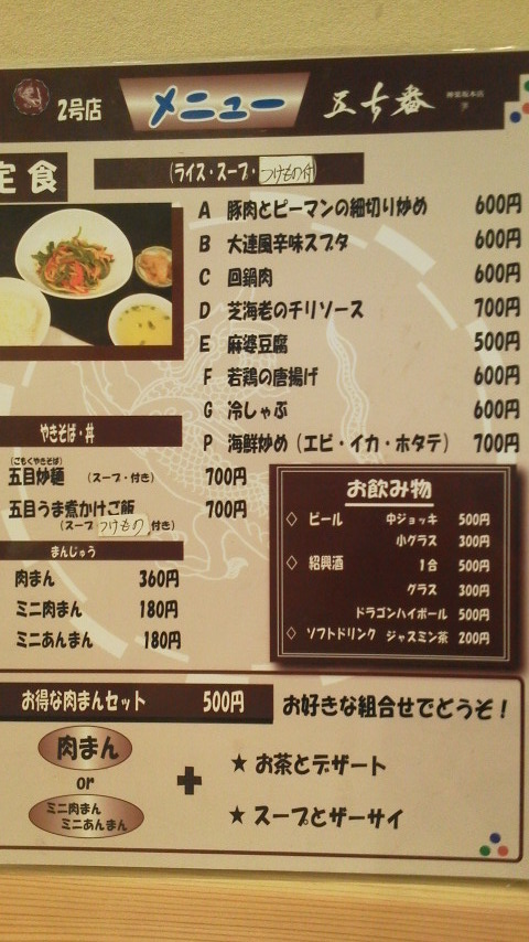 500円から700円で定食があり、味も良いです。