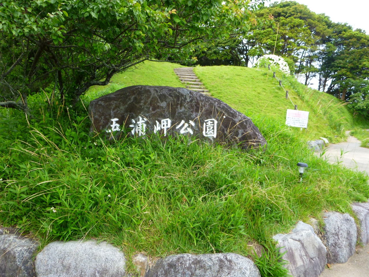 五浦海岸に沿って造られた公園で、六角堂のちょうど反対側にあり、この公園からの眺望が六角堂を眺める位置としては一番良いと思います。