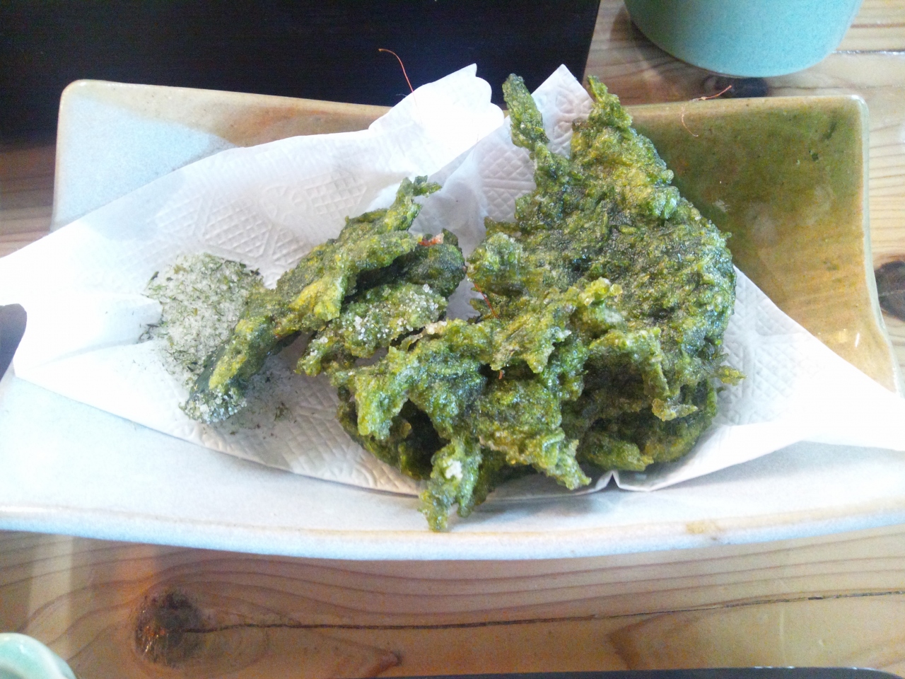メニューは、結構値段がするものばかりですが、滅多に食べれない四万十料理と思い、ウナギ丼に単品でアオサの天婦羅・川エビの唐揚げ・ゴリの唐揚げを頼んで一通り食べようと奮発しました。おかげでランチに4000円ほどかかりました…。