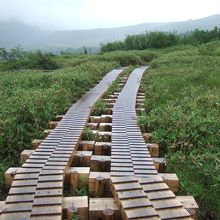 弥陀ヶ原ホテルの左奥から木道の遊歩道が続いていて40分コースと1時間コースは