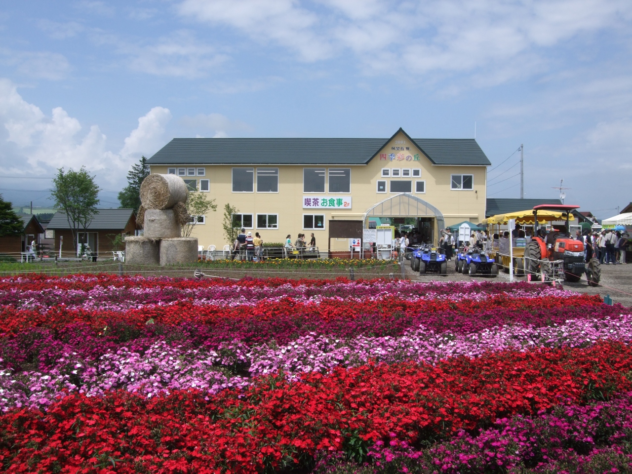 美瑛や富良野の美しさは、本来は農地なのに、独特のゆったりとした丘のうねり。加えて、農業を目的とした作物ではあるのですが、季節季節の美しさが備わっている。そこを味わうことだと思います。これに対し、四季彩の丘はあくまで、観光を目的として、鮮やかな花々で埋め尽くしたもの。完全に、見せるためのものなので、そういう意味では邪道です。しかし、朝から晩まで、農地を見てしまうとやっぱり、どこか食傷気味になるのも正直なところ。鮮やかな花々に囲まれるこの場所は、逆に何かほっとさせられる気持ちになりました。