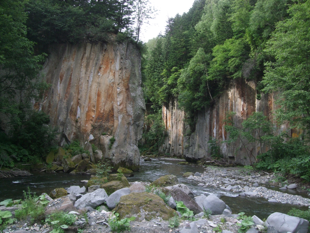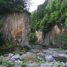 赤みの帯びた屏風岩の間を流れる渓流は、独特