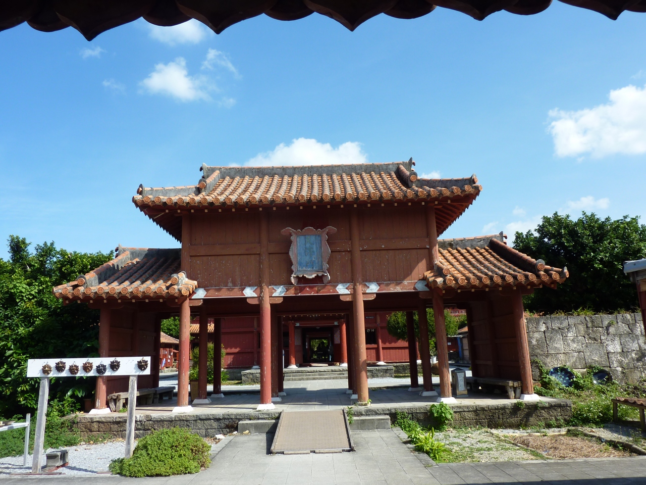 かつて大河ドラマのオープンセットとして利用していたそうだが、首里城を思わせる朱塗りの建物の周辺では、三線や織物をはじめとした工房が並んでいた