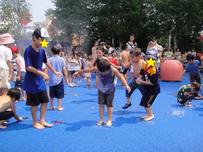 一時間に一度、曲に合わせて大量の水が噴き出すので、