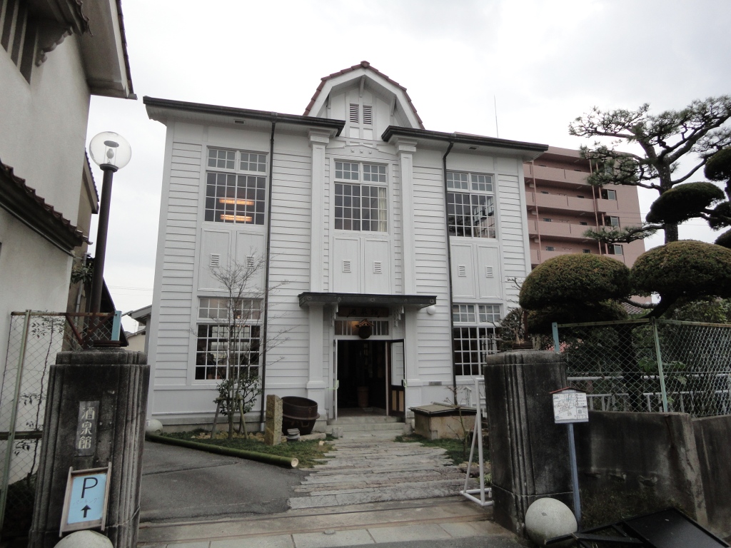 白壁の酒蔵が地域一杯に広がり、町ごと酒のテーマパークになっている東広島市・西条の酒蔵通り。地元大手の賀茂泉酒蔵に隣接して「お酒喫茶 酒泉館」がありました。昭和4年に造られた広島県酒蔵試験場の建物を改装してつくられており、レトロな雰囲気が町にぴったりです。当然、日本酒は飲めますが、酒の仕込み水でつくったコーヒーや酒でつくった化粧品などのお土産物も扱ってました。「酒の図書館」もあり、各酒蔵での試飲で酔っぱらった人の休憩にもちょうどいいかも。