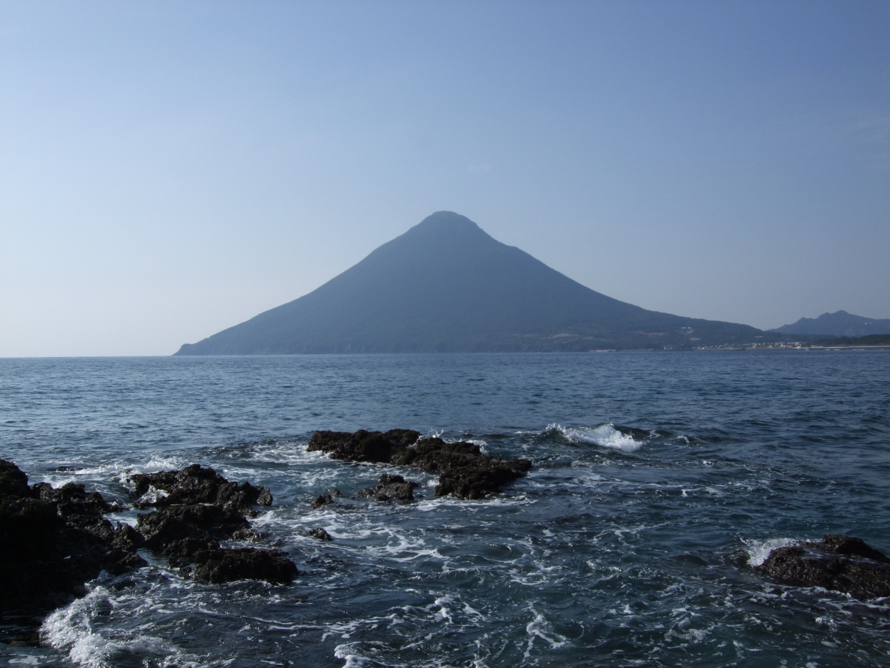 薩摩半島の最南端にある岬から海越しに見る薩摩富士は見事な円錐形でした