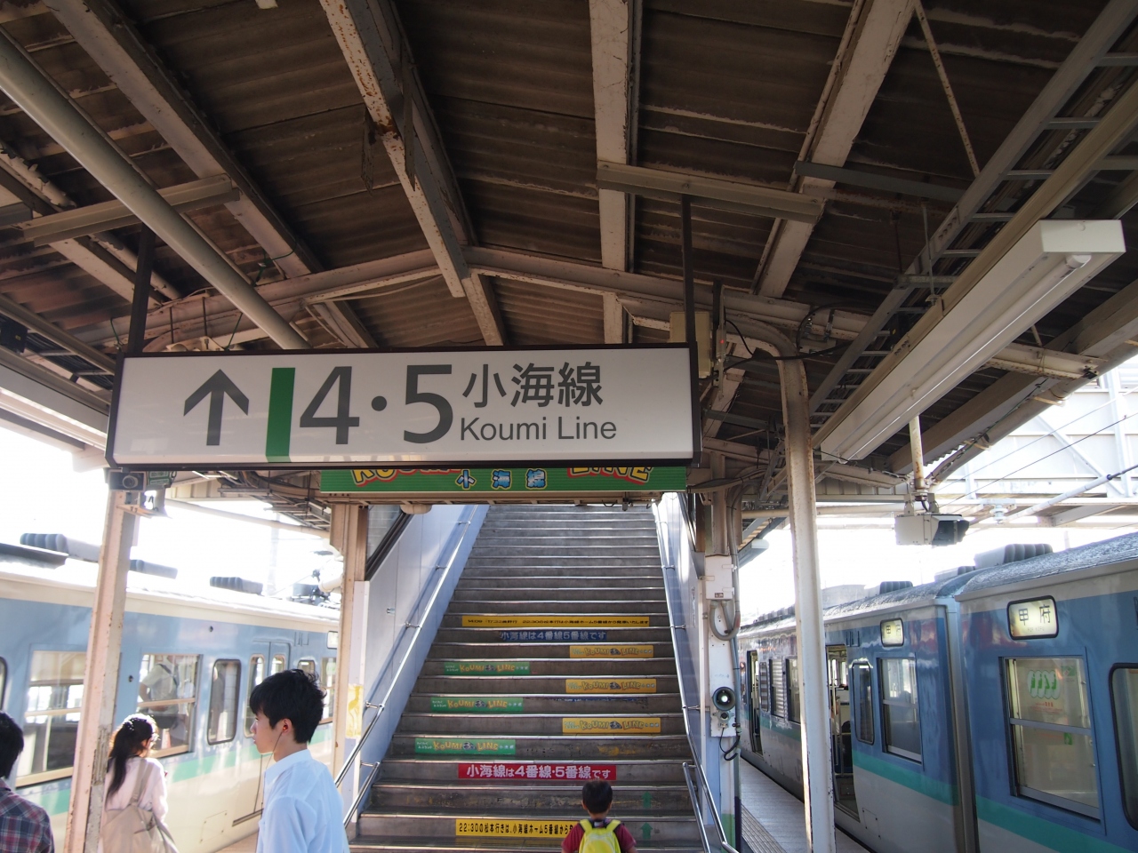 清里方面に行く場合は、この駅で小海線に乗り換えます。 中央線ホーム経由でまた階段を上り…と結構移動が面倒くさい駅の設計です。