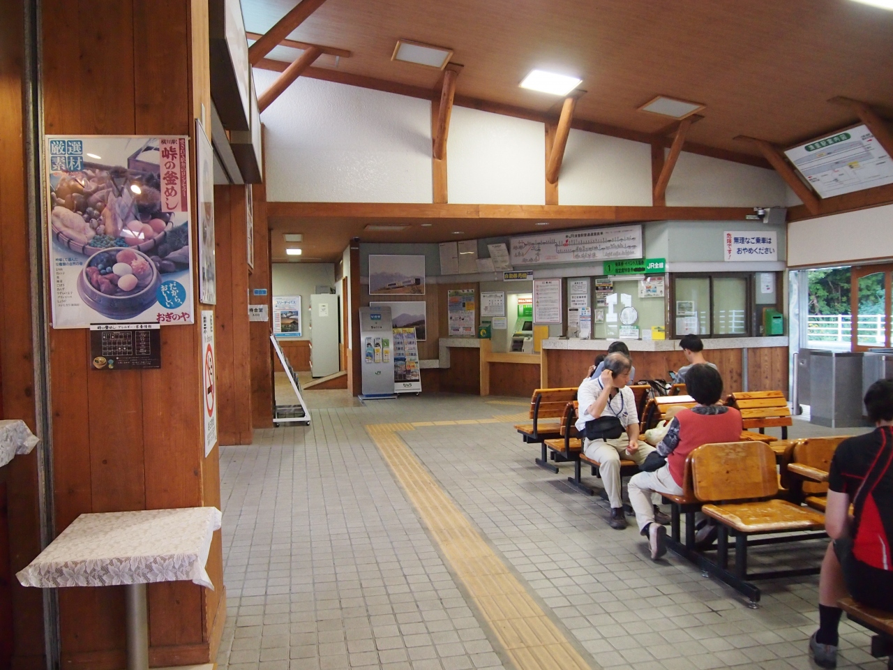 山梨への日帰り旅行の際に最後に立ち寄った駅です。 駅舎も比較的新しくて小奇麗な印象でした。 標高の高い場所にある駅です。 駅前にはSLが飾られていますので、子連れの方々は写真スポットとしても楽しい駅です。 駅の待合コーナーではお土産の釜飯などの駅弁を売ってます。