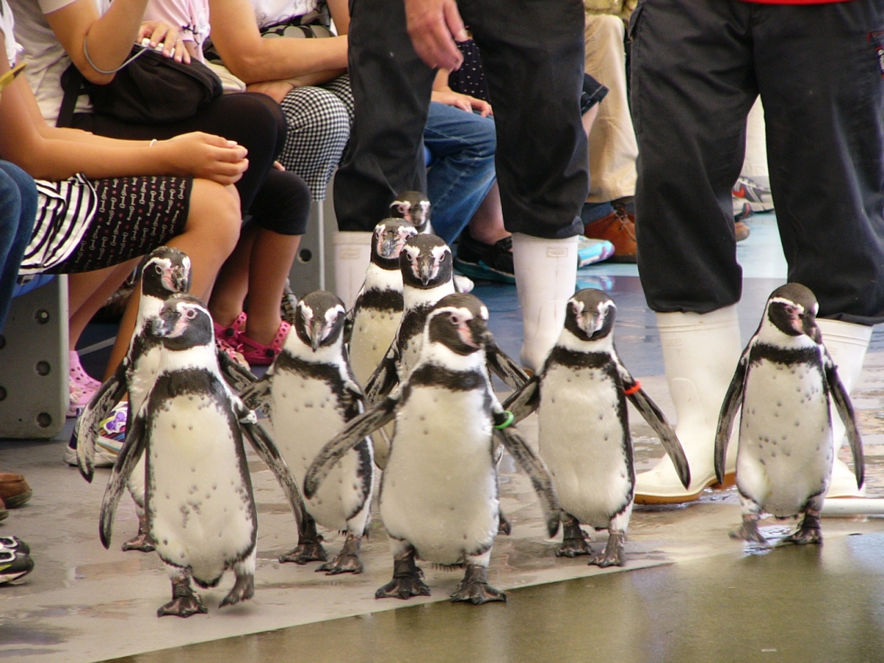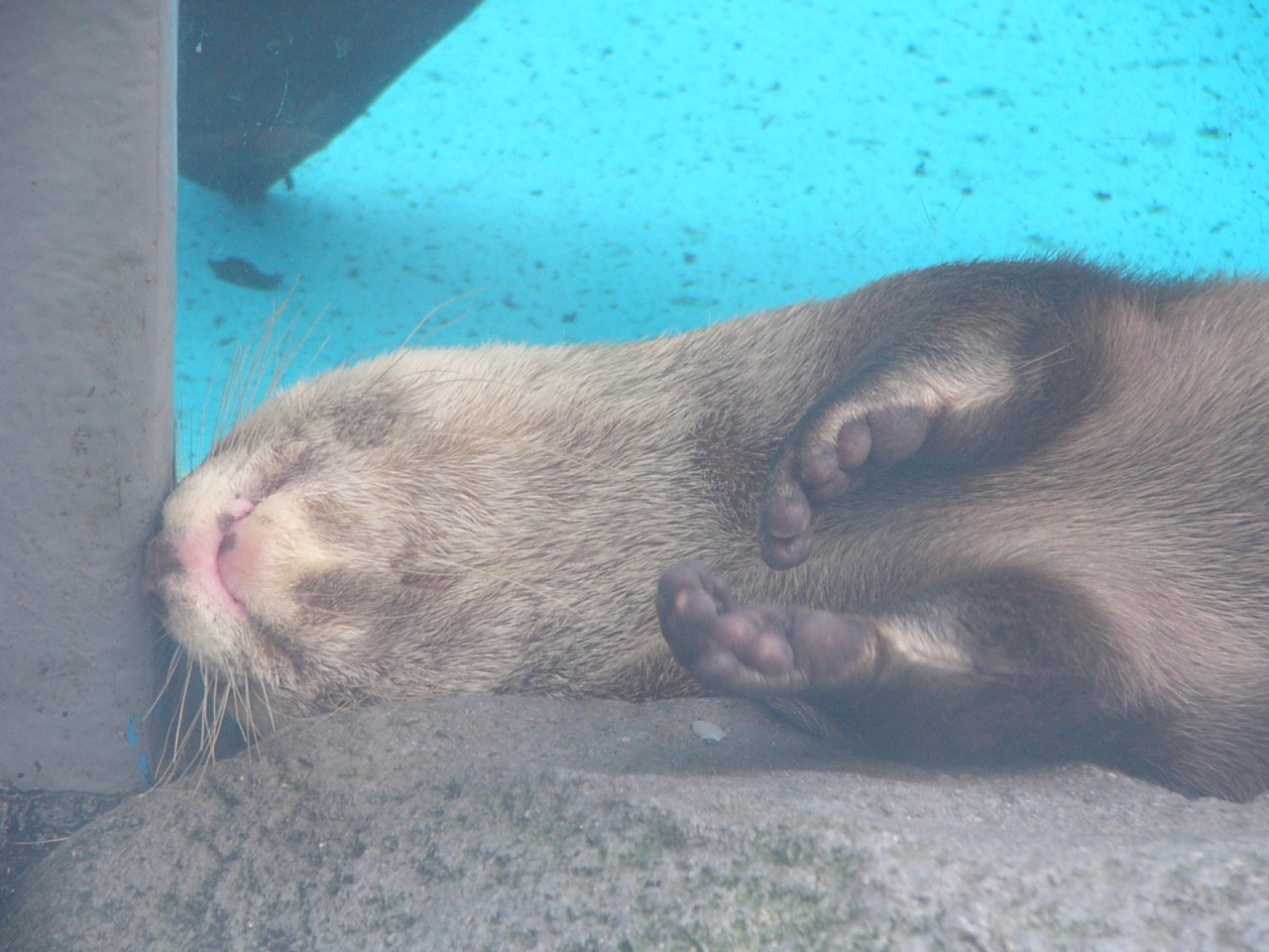 スナメリの水槽を上から見ることが出来る場所があるのですが、水面に散らばったサッカーボールをきれいにゴールの中におかたずけするのです。