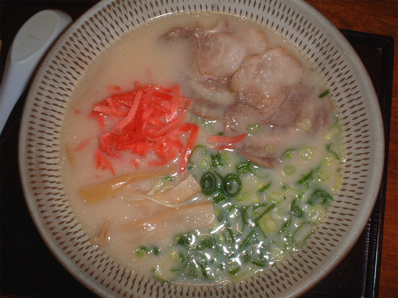 福岡空港第2ターミナルビルにある博多ラーメンのお店です。若干高めの価格設定ですが、空港にいながら本格的な博多ラーメンを食べることができます。定番の博多ラーメンは、濃厚なトンコツスープに固めの細めんがマッチしており、紅ショウガがアクセントになっています。