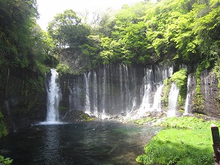 駐車場に車を置いて、5分ほど階段を下ると、白糸の滝が。
