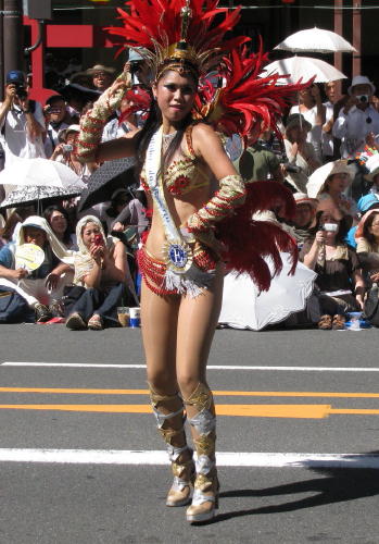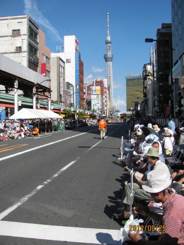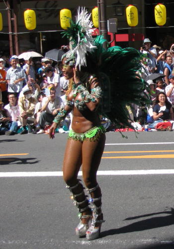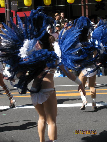 第31回浅草サンバカーニバルが12年8月25日(土)午後1時30分より6時まで開催された。第1回は1981年だそうで結構歴史があったのですね。去年は東日本大震災の影響で中止になった分今年は2年分踊ると皆さん息巻いていました。楽しいリズムや華やかなコスチュームを見る為、早くから場所取りに男が集まっている。写真を撮る男達の熱い眼差し、仕事では見せない真剣な表情でシャッターを押していました。私も同じ・・・場所は東武鉄道浅草駅に近い馬道通りの朝日信用金庫前から雷門通りに入り雷門まえを通り国際通りまで約800メートルのコースです。踊る方も熱いが見る方も暑い。熱中症に罹らないように水分補給を取りましょうと何度もマイク放送をしていました。
