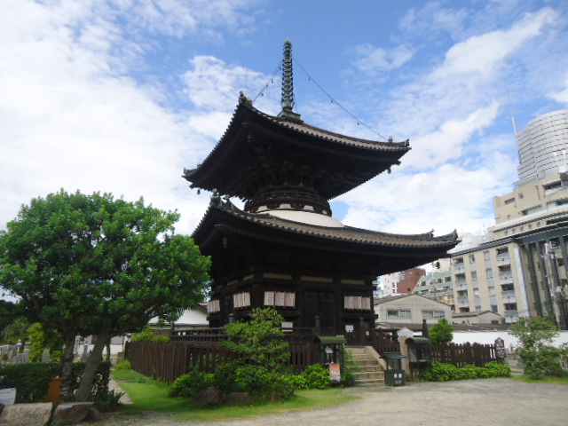 大阪市天王寺区にあります。地下鉄谷町線四天王寺夕陽ヶ丘駅から歩いて数分のところにあります。勝鬘院本堂の裏にものすごく歴史と年期を感じさせる多宝塔があります。多宝塔は聖徳太子によって創建、豊臣秀吉によって再建されたそうです。ここに行かれた是非観て欲しいです。