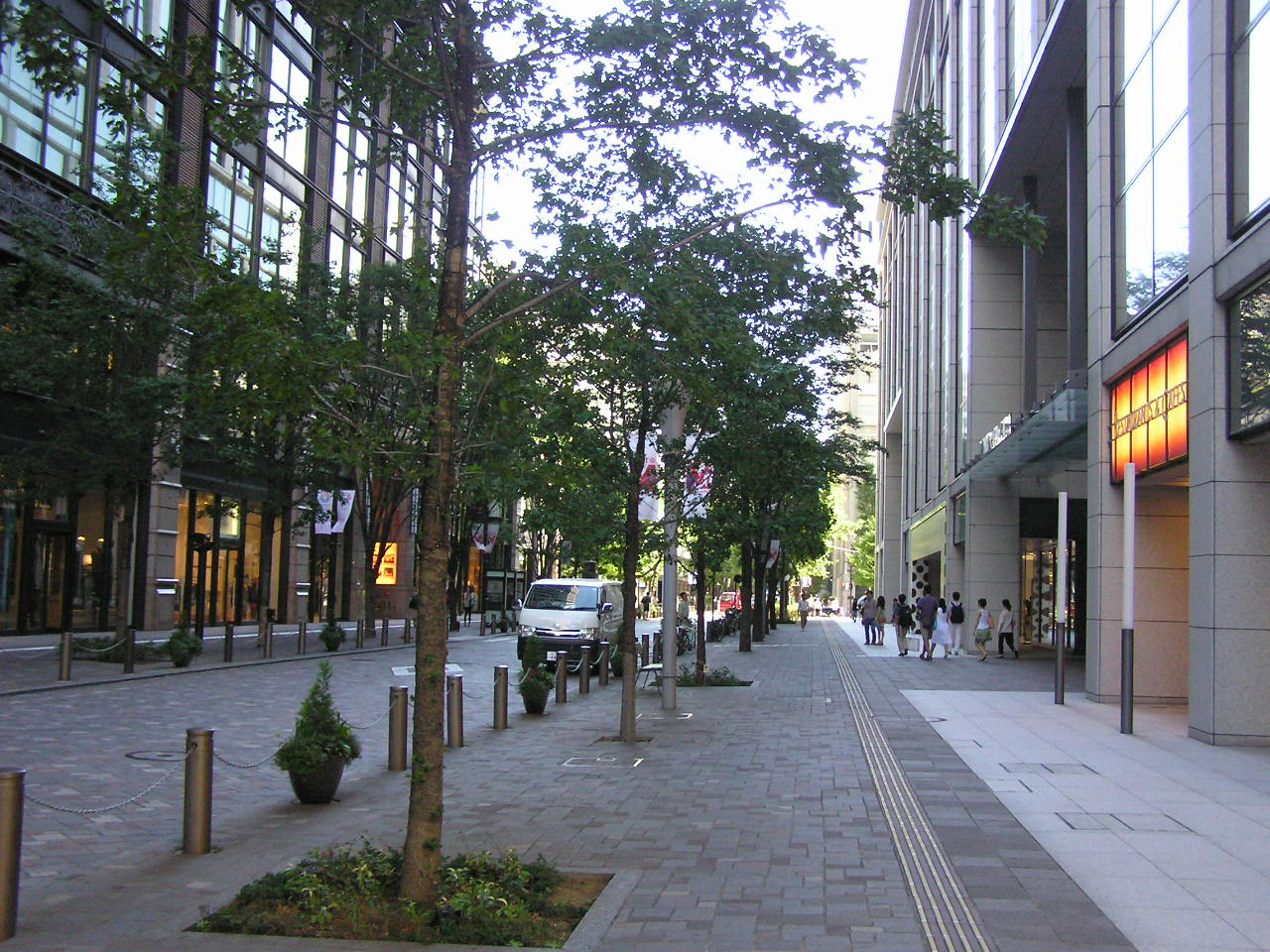 東京駅正面の新丸ビルから、晴海通りに面するペニンシュラホテルまでの通りが丸の内仲通りになります。