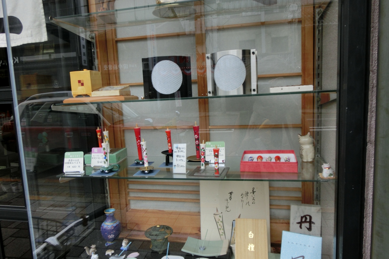 想像よりこじんまりした、和ろうそくの老舗です。もとはお寺にお供えするものでしたが、最近では絵のついた華やかなタイプがおみやげとして人気。洋蝋燭と違い、天然の原料の和ろうそくはすすも出ず、炎が大きいのが特徴なんだとか。和ろうそく事態は他所の店でもみかけますが、こちらは卸もしているだけあってほんの少しリーズナブルです。