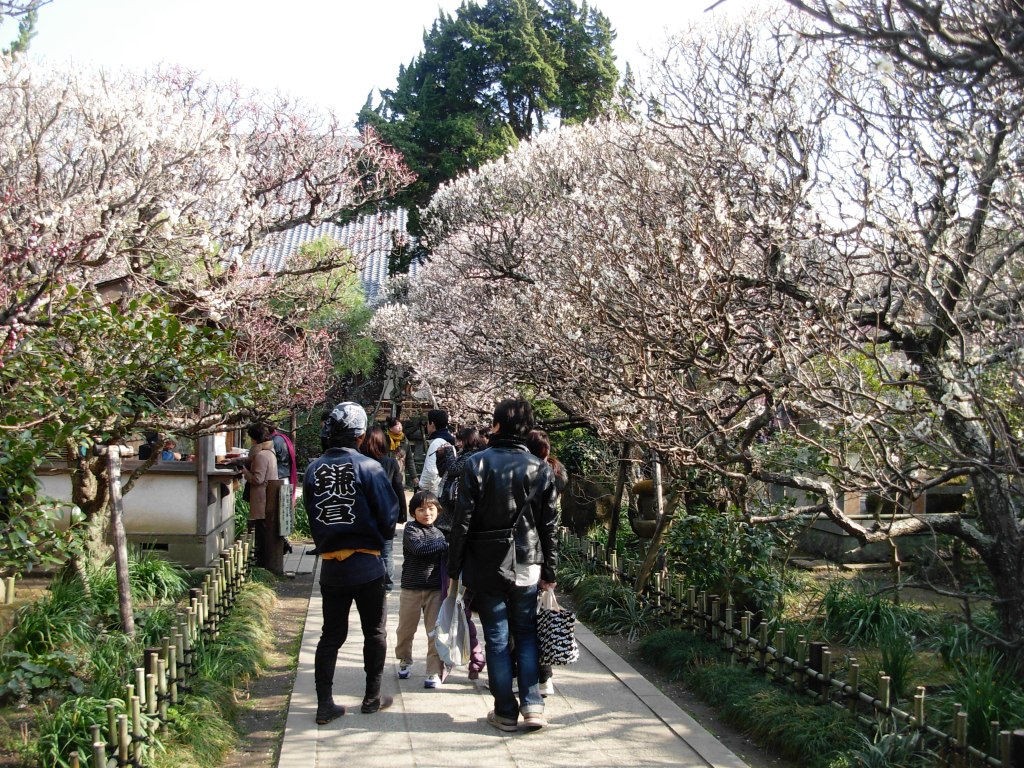 鎌倉でハギ寺とも呼ばれているのが宝戒寺です。といっても、参拝したのはハギが咲く初秋ではなく梅の季節。でも、本堂に向かう短い参道の左右に咲き始めの白梅がとてもきれいで、写真を撮る参拝客の姿が目立ちました。面白いのは創建のいきさつです。この場所付近には鎌倉幕府執権の北条氏邸がありました。鎌倉幕府が滅亡した際、後醍醐天皇が北条氏鎮魂のための寺をつくることを要請し、幕府滅亡へと追い込んだ足利尊氏が建立したとのこと。ハギ、梅以外にも桜、マンジュシャゲなど花のお寺としても人気だそうです。