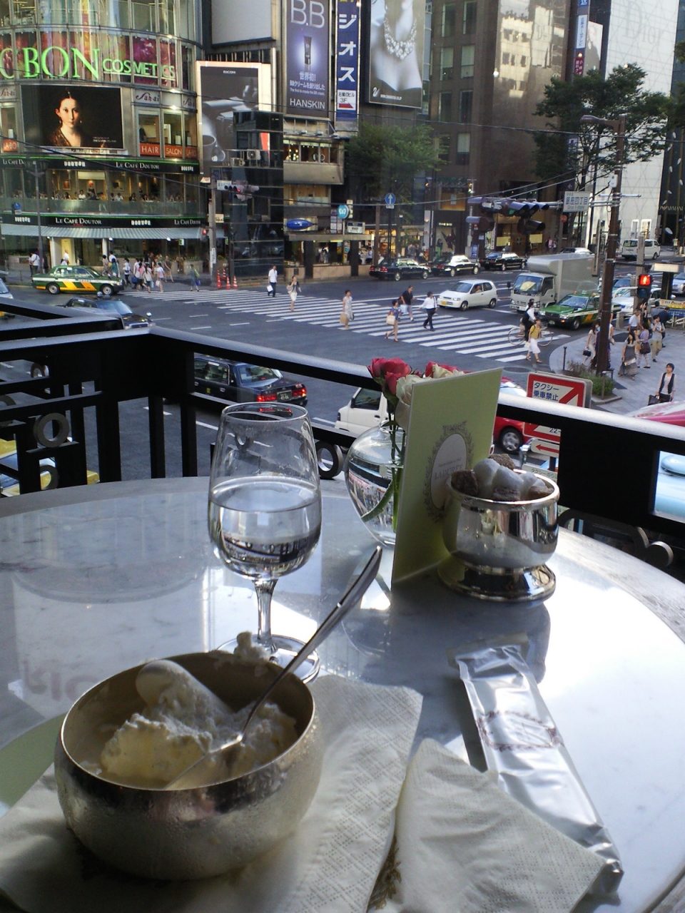 銀座の交差点を見ながら、のんびりできて、かなり贅沢な気分になれます。