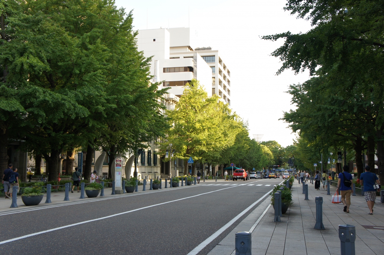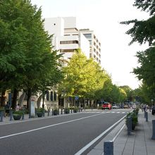 明治3年頃に完成した、日本初の西洋式街路だそうです。歩道が非常に広く、歩きやすいです。街路樹もゆったりと植わっていて、隣接する建物も重厚感があり、ヨーロッパの通りのようです。