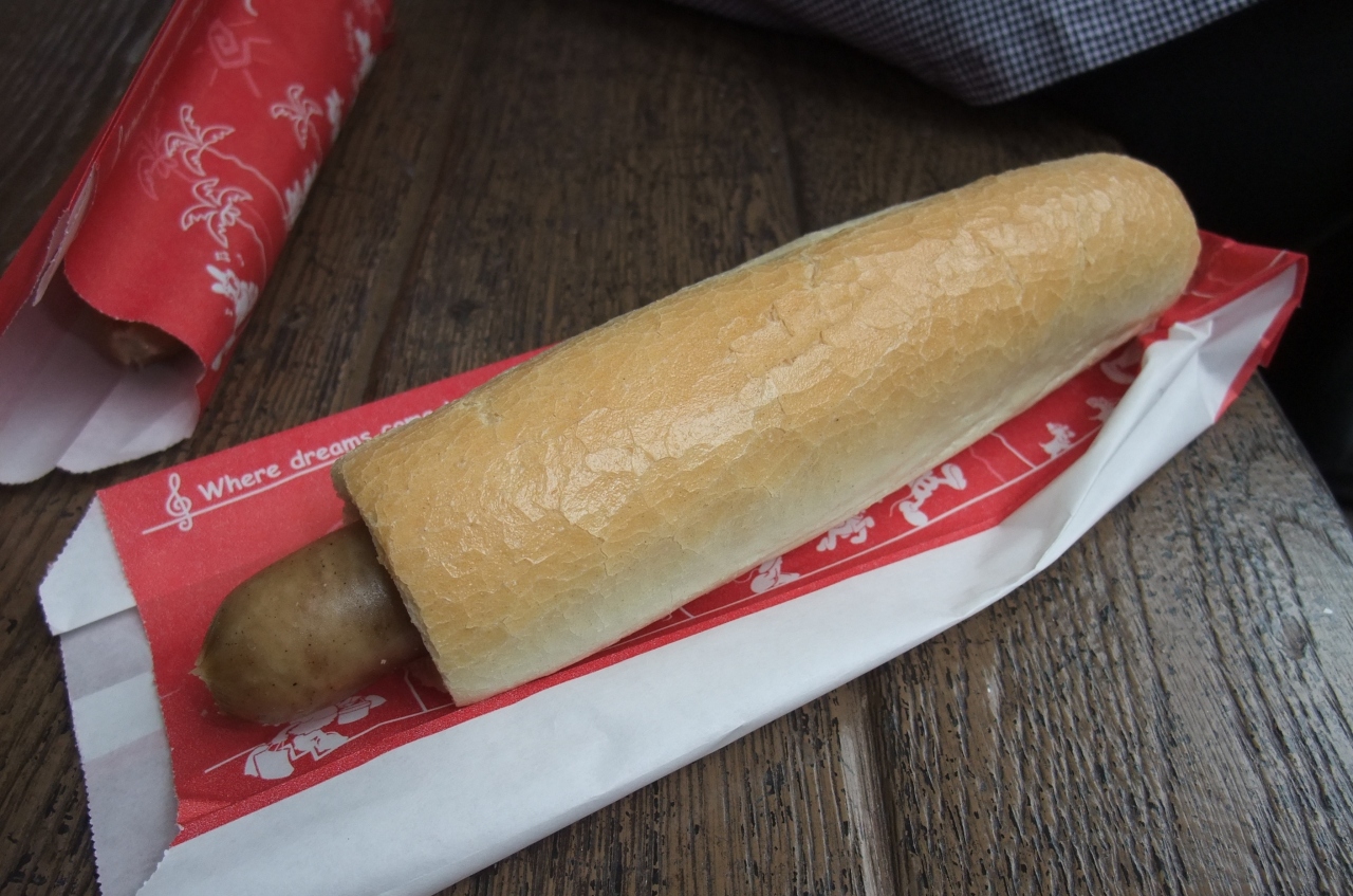 東京ディズニーシー内にあるテイクアウトのお店です。名物の「ユカタンソーセージドッグ」は、粗引きのソーセージをフランスパンのパンズでくるんでいて、噛み応えがあります。ソーセージはガーリック風味でややスパイシーなので食欲をそそります。