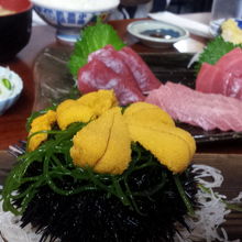 急遽思い立って行ってしまった三崎。三崎と言えばマグロということで、行きしに検索しながら出たのがこの「くろば亭」評価もそこそこ良く並ぶの覚悟で行き、到着はお昼時のぴったり12時。奇跡的に6台くらいしか停められない駐車場にも停められ、お店に行くと1テーブルだけ空いているというダブルの奇跡!席につくと定員のおばちゃんが軽快にメニューを説明。悩むだけ悩んでメモに書いて注文させてくれるというシステムがお客の心理をわかってくれています。とにかくマグロは食べなきゃとマグロ盛りを注文。それぞれの部位が3切れずつのっていて(4人で行った私たちは微妙でしたが)どれも新鮮で美味しすぎる!そしてうにの甘さにとろけました。店を出る頃にはお客さんの長い列が。ホントにラッキーでした!