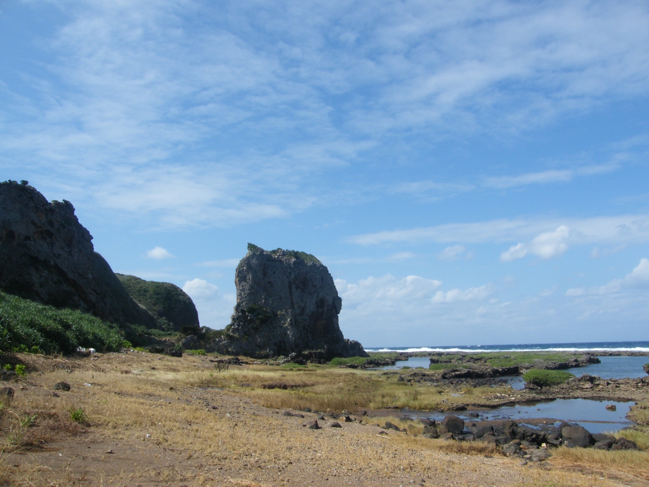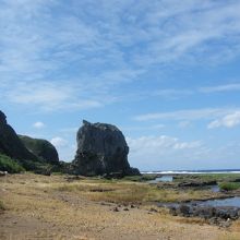 絶壁の下の海岸に位置する立神は、昔は幻の名所と言われていたらしいです。今は遊歩道ができて誰でも行ける場所になりました。しかし250段の階段を降りると行く先は草が茂っていてそんなに大勢の人が歩いている感じではありません。階段の途中から見れる天宮城という岩もありますがこれと間違えないように。