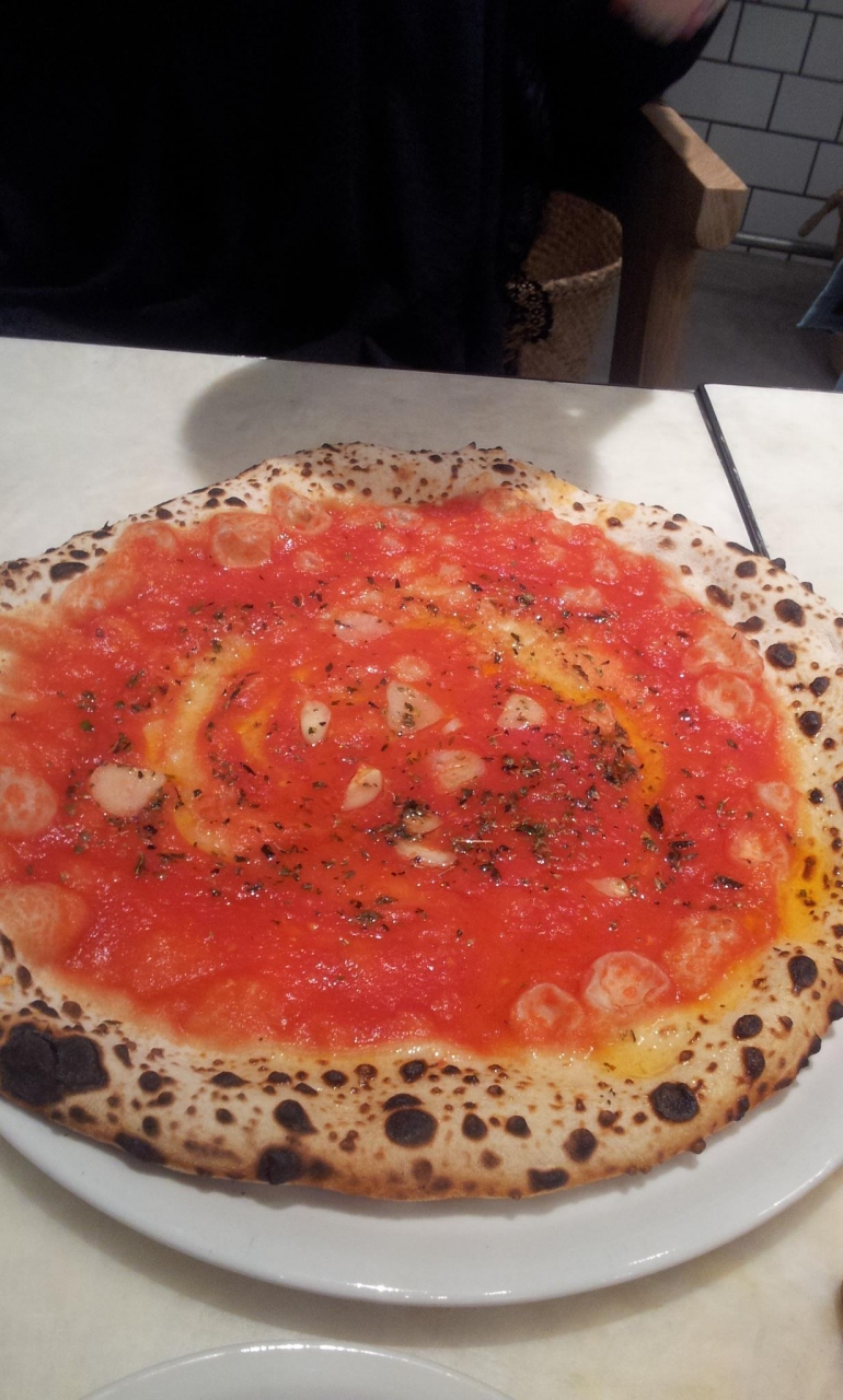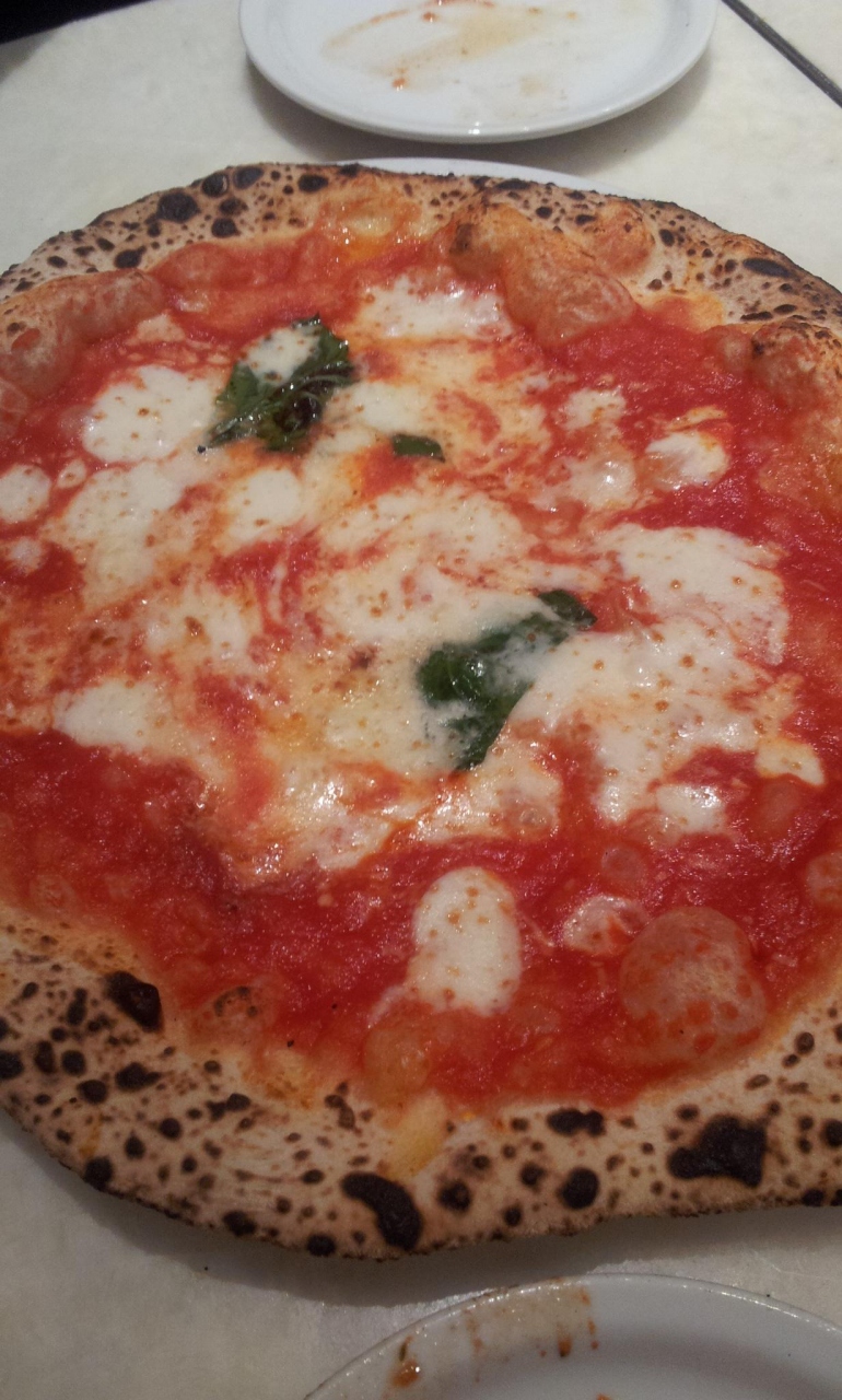 イタリアでは普段並ぶことを嫌うイタリア人も唯一並ぶ店だとか。これは是非行っておかなければと思い、ラッキーなことに恵比寿勤務の私はランチで行ってきました。ピザはマルゲリータ、マリナーラなど定番なピザ。昼は1人1枚必ず注文しなければいけないルールがあってちょっとキツイ。できればシェアできると・・・女子1人で1枚は結構なきつさです。あと残念だったのはサラダに髪の毛が入っていたころ。それを定員に言ったら小さい声ですみませんとあっさりと交換されました。ピザはすっごく美味しかったのになー。生地はちょっと今まで食べたことがない味とモチモチっとした食感。ピザ好きな人は食べたら絶対とりこになるはずのピザです。なのに・・・本当に残念。