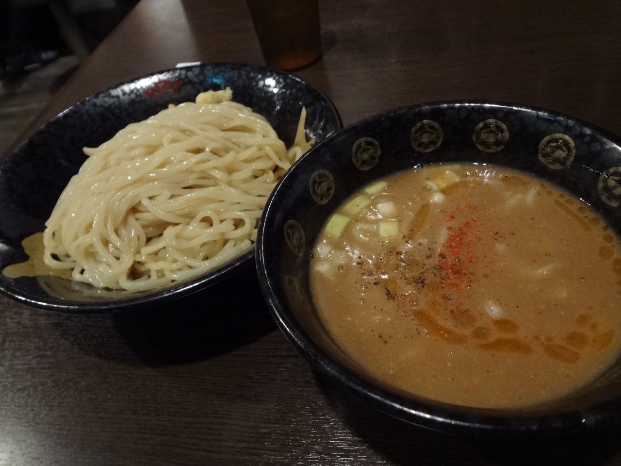 お店のウリも知らずに、人気No1という表示のみをたよりに「極上渡り蟹の味噌ラーメン 味玉入り」(950円)の食券を買って並んでいたのですが、つけ麺が食べたくなり、お店の人に事情を話して、つけ麺のオーダーに変更してもらいました。