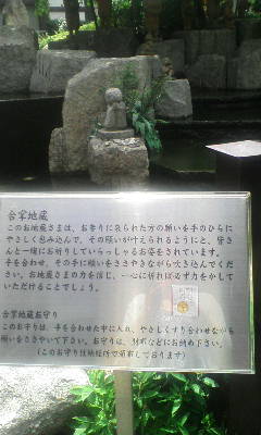 こんなところに、という感じで六角堂がありました。池坊発祥の地みたいです。中はそれほど広くなく、水辺に並んだ小さな十六羅漢様(和顔という、いつも優しい顔つきで、穏やかに話をするように心がけてさえいれば、必ず良い報いがあると説かれたもらしいです)