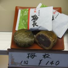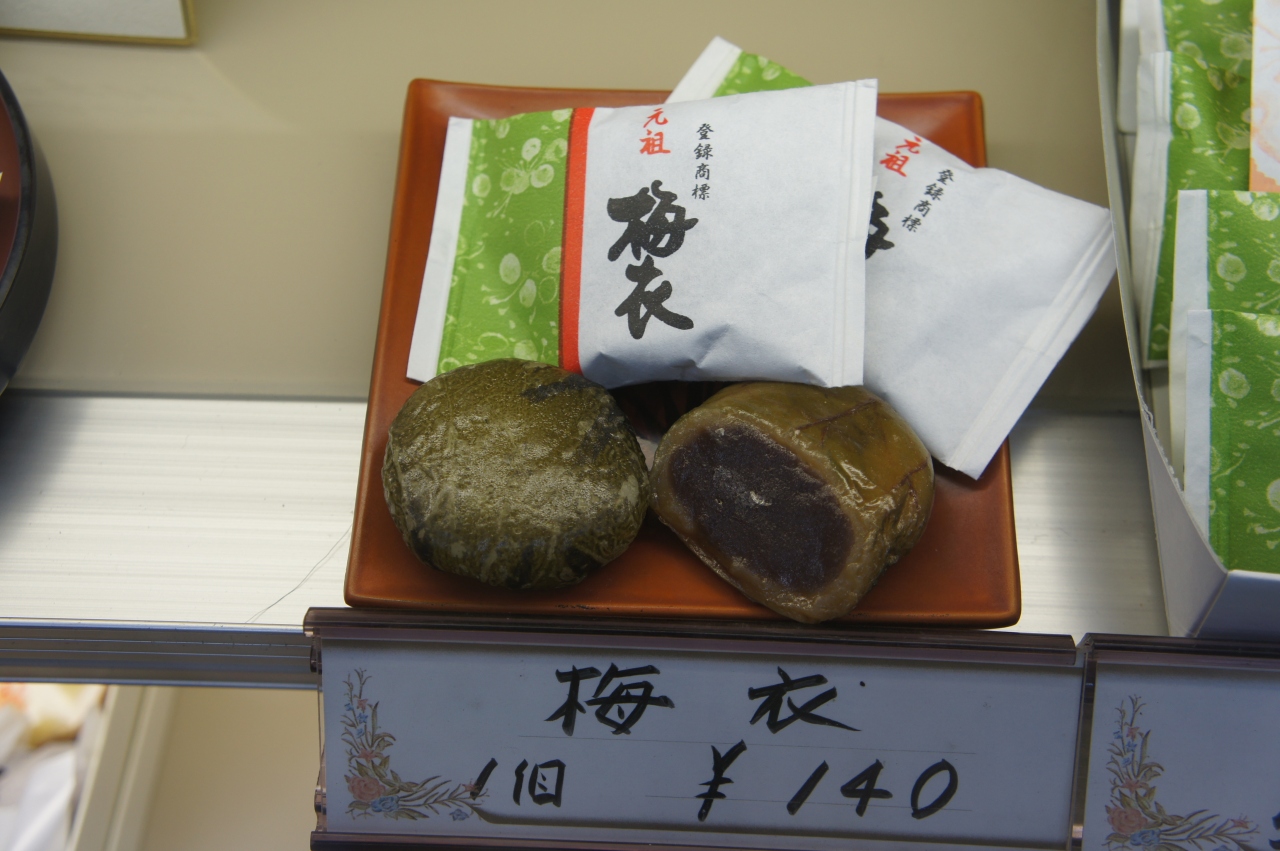梅衣は、掛川で5代続くという老舗の和菓子屋、榊屋の看板商品。掛川駅から掛川城までの大通り沿いの店に入ってみると確かに老舗の雰囲気があります。早速いただいてみると、これはうまい。全体に巻いたしその葉の繊維がしっかりしていて歯ごたえがあるし、塩加減も絶妙。これで十分、お菓子の特徴があるのですが、さらに中の餡子とお餅も完成度が高いです。