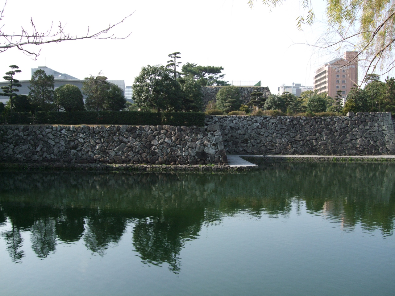 大分城址公園は、大分市の中心部。大分城は、元は豊後国の国衙が置かれた場所であり、中世には府内と呼ばれていたので、府内城と言います。この府内城は、鎌倉時代から戦国時代にかけては豊後国の守護大名であった大友氏の拠点であったのですが、現地の説明板は、江戸期の松平氏にかかるもの。しかし、この松平氏は2万石の小大名であったため、そのような説明があっても、申し訳ないのですが、なかなか感慨は湧いてきません。石垣の内部には、ホールを備えているのでしょうか、文化センターのような施設。敷地では、骨董市をやっていました。ただ、周囲を散策してみると、お堀の水は意外にきれい。鯉の泳ぐ姿がゆったり。よく見えました。大分は、小藩の集まりで、一番大きな藩でも福沢諭吉の出身藩の10万石。これもそいういう意味では大分らしいのかもしれません。