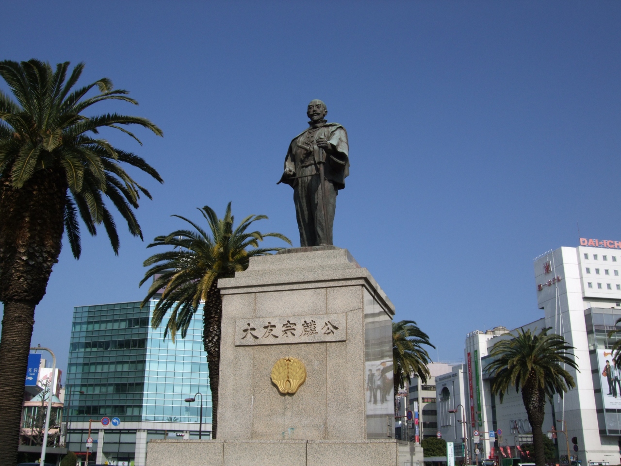 大分駅前に建つ大友宗麟像。これは、ずいぶん立派です