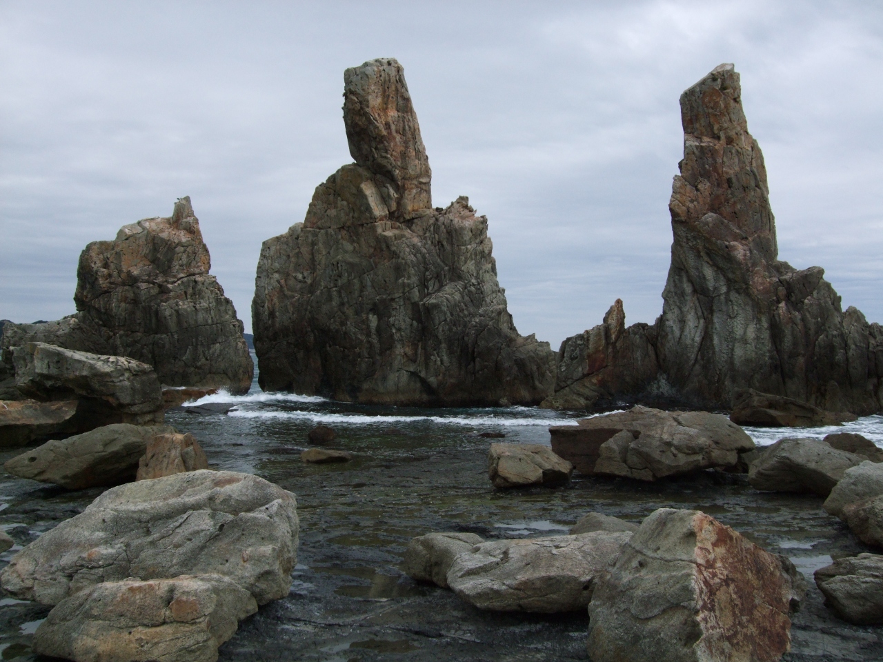 橋の橋脚が続いたような形の岩