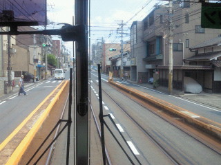 駅といっても、普通の道路にちょっとだけ乗り降りスペースを設置してみたという感じです。かなり衝撃的でしたが、路面電車ですので、そんなものなんでしょうか。。