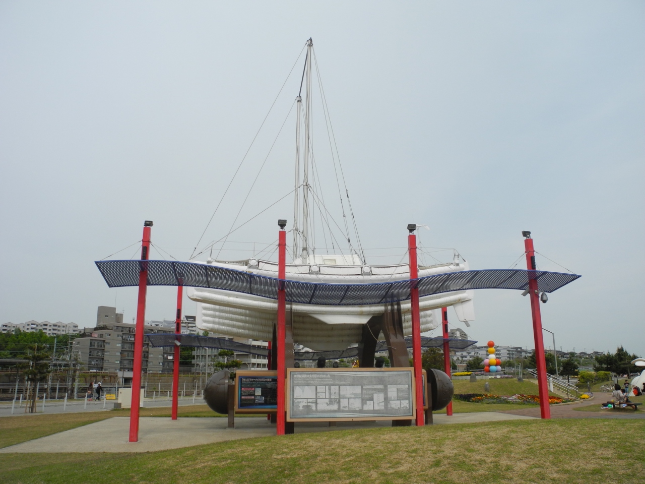 大蔵海岸には、海洋冒険家堀江謙一氏のMALT'Sマーメイド?号が、JR朝霧駅から歩道橋を渡った所に展示されています。1999年、海洋冒険家堀江謙一氏は、MALT'Sマーメイド?号にのり、サンフランシスコから大蔵海岸に到着。明石市市制80周年の記念としてこのヨットは寄贈されました。