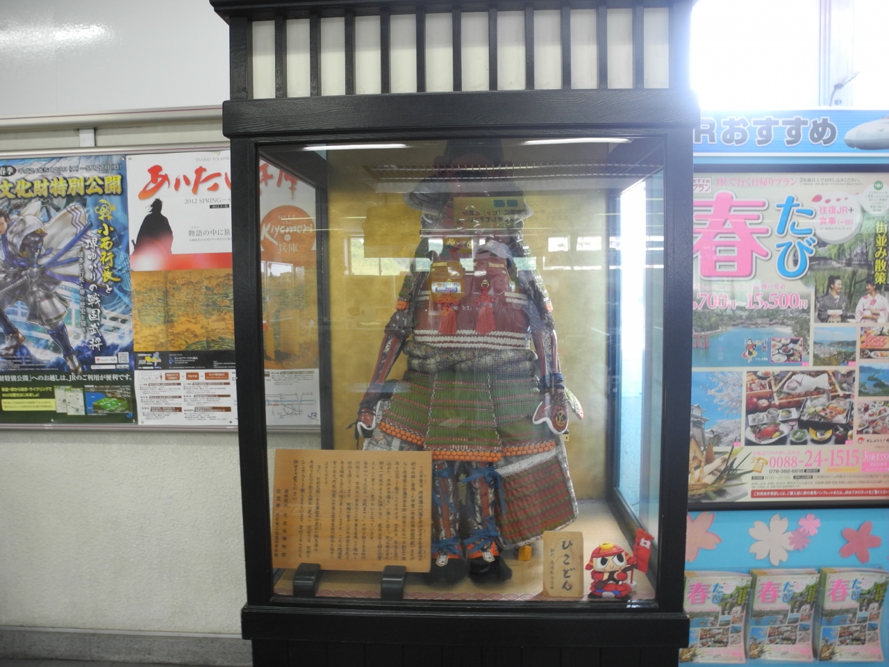 彦根駅の構内にあるこの甲冑は、彦根藩二代藩主の長男が幼少時に着用したもので、少し小さ目ではありますが、豪華さを感じます、大変、重そうに感じます、この甲冑は、毎年11月3日にのお城まつりに市内の小学生がこの甲冑を着用して参加するとの事で、ぜひ、一度、